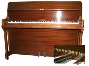This immaculate upright piano with intricate mother of pearl inlay and ornate design has been restored to its former glory. The rich wood is rosewood. The instrument has had a full action overhaul...